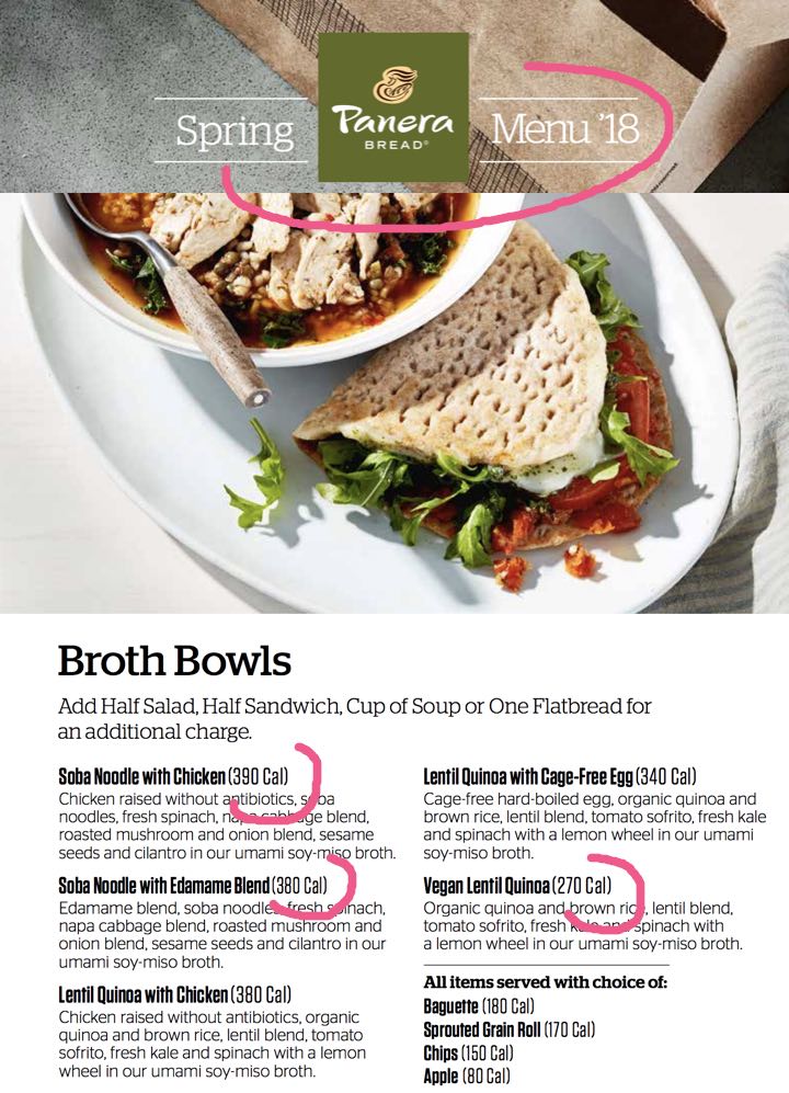 Restaurant Menu Example: Panera Bread
