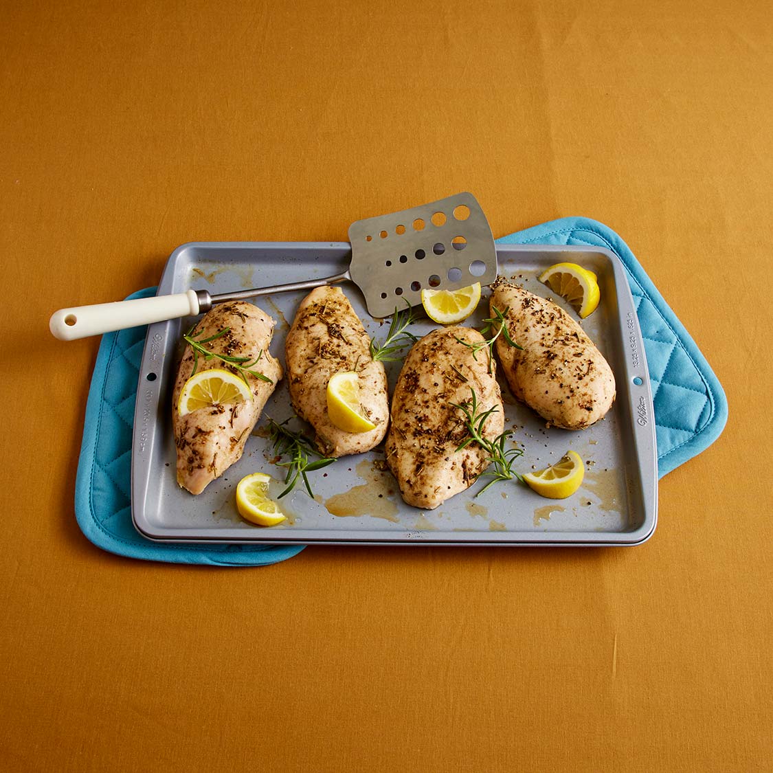 Marinate chicken in a bright and herbaceous sauce of lemon, rosemary, and thyme.