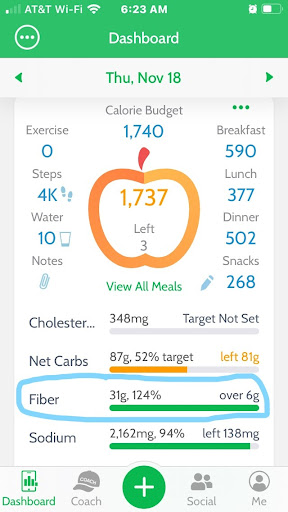 As you add more fiber to your diet, you can feel full longer, lose weight, decrease cholesterol, and maintain blood sugar. Cheers to improved health through tracking!