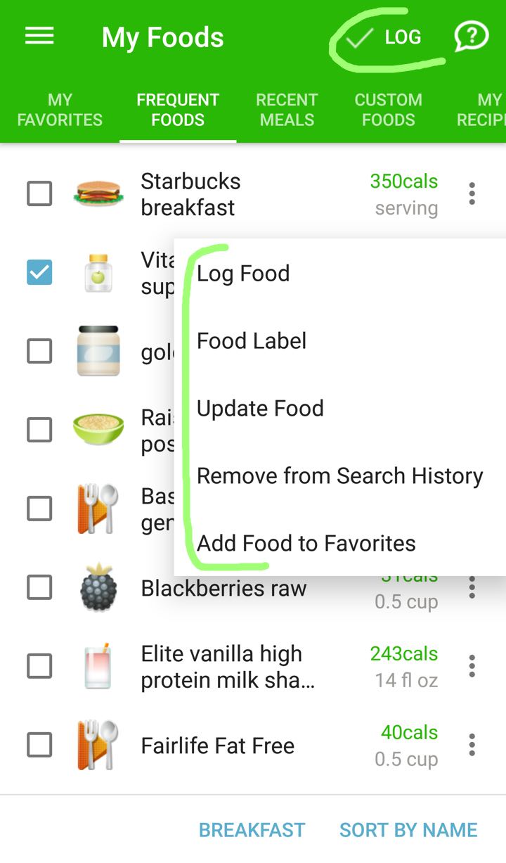 This list contains the foods you log most often. It grows automatically as you keep logging. This list excludes foods already logged today.