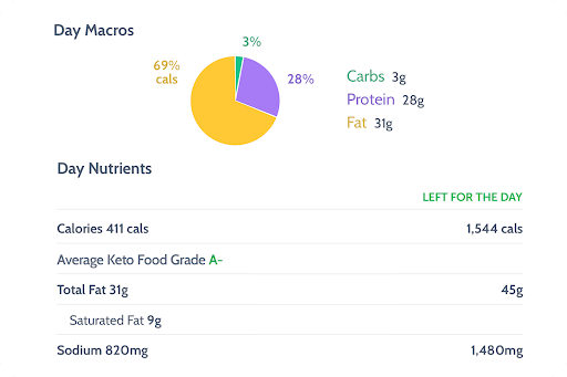 A visual display of daily macros and low-carb and keto food grades helps you plan and evaluate your diet.