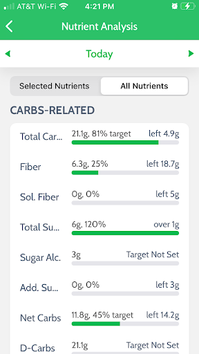 Carb Genius lets you track up to 50 nutrients. Paying attention to the quality of your diet ensures that you don't develop nutrient gaps as a result of limiting fruits, legumes, and whole grains.