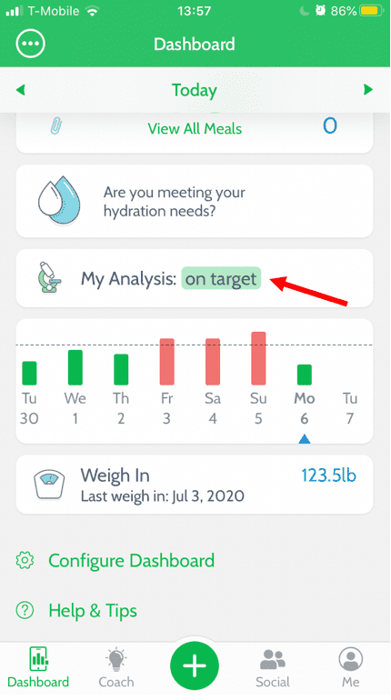 The Dashboard will periodically show you personalized advice to help you stay on track, lose weight, and eat healthier.
