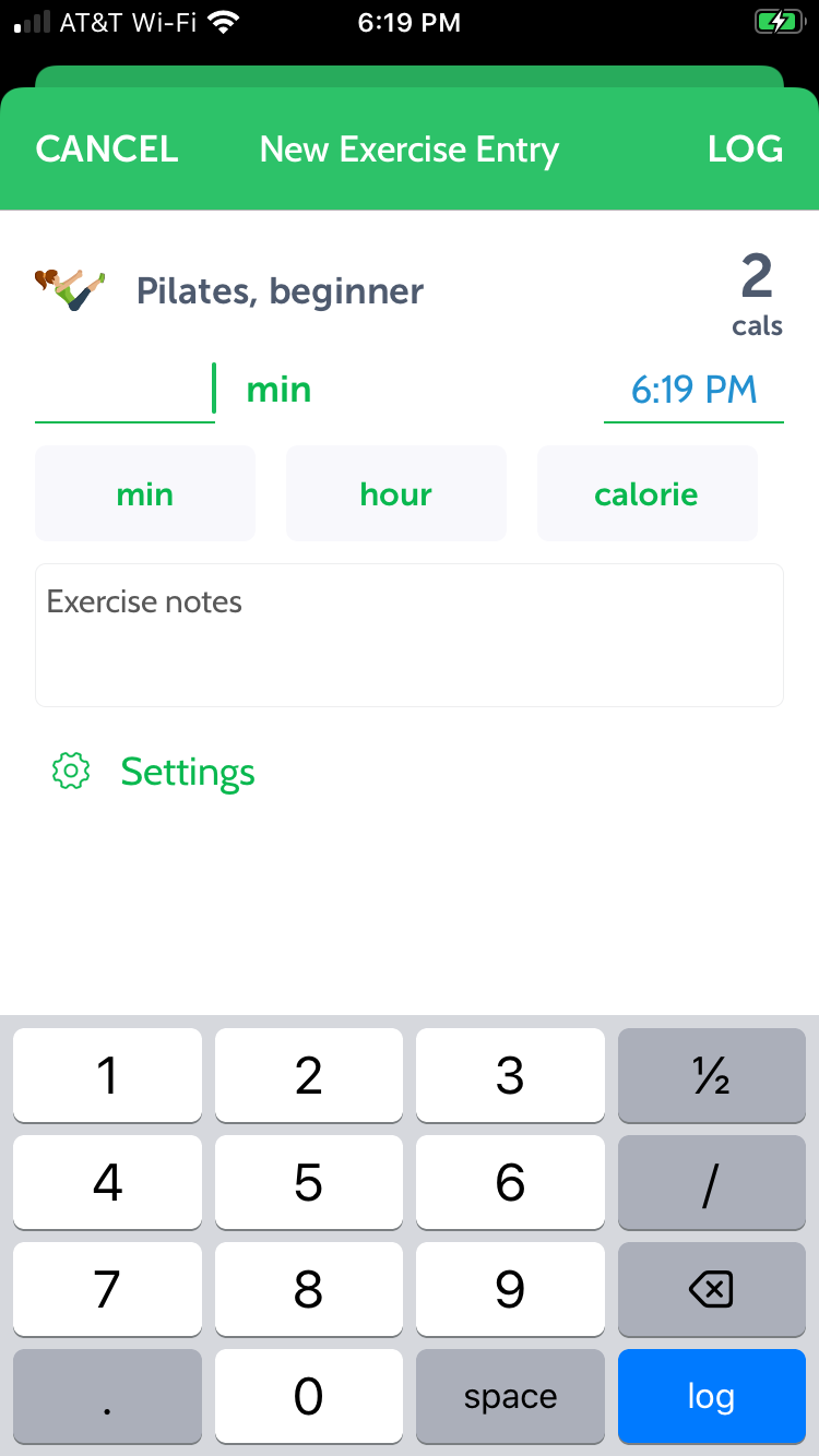 Track the minutes of your Pilates workout by tapping on Exercise from your dashboard. Next, search for Pilates, and you'll see three levels: beginner, intermediate, and advanced. Select the appropriate level and the number of active minutes in your workout.