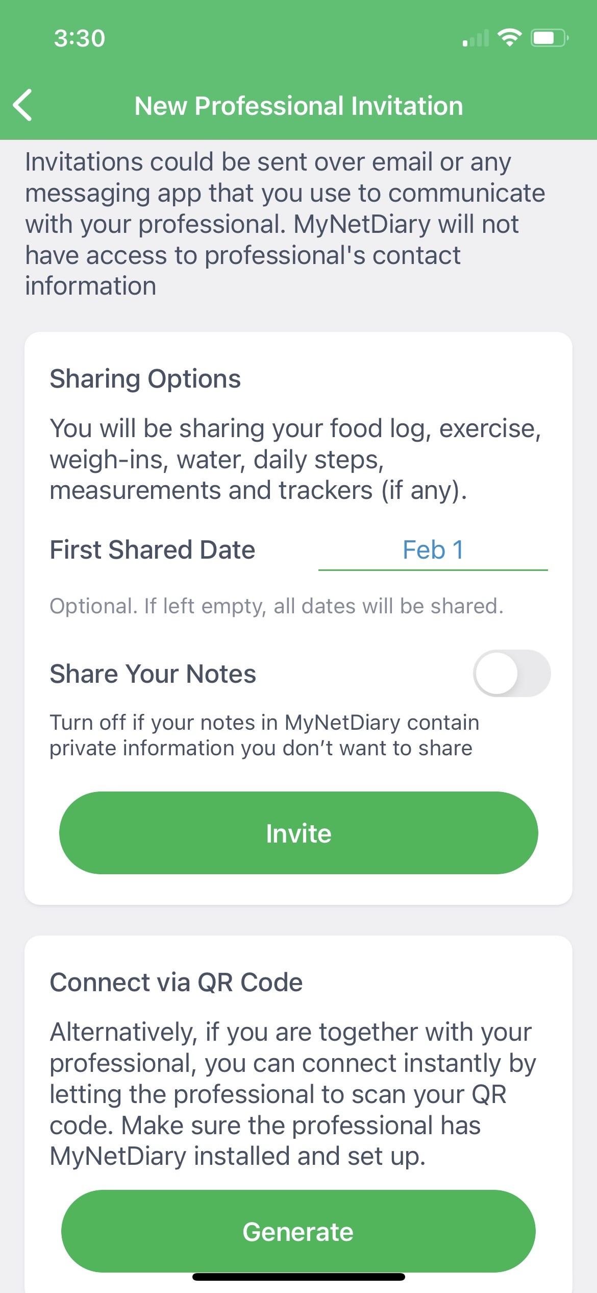 Once you or your professional have accepted the other's invitation, you can start sharing immediately!