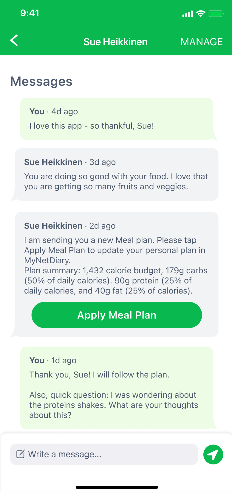 Even though MyNetDiary makes it as easy as possible to keep food logs, tracking your food and exercise does take effort. Sometimes just knowing someone is checking in on you and supporting you gives you the extra nudge to keep up with your efforts.