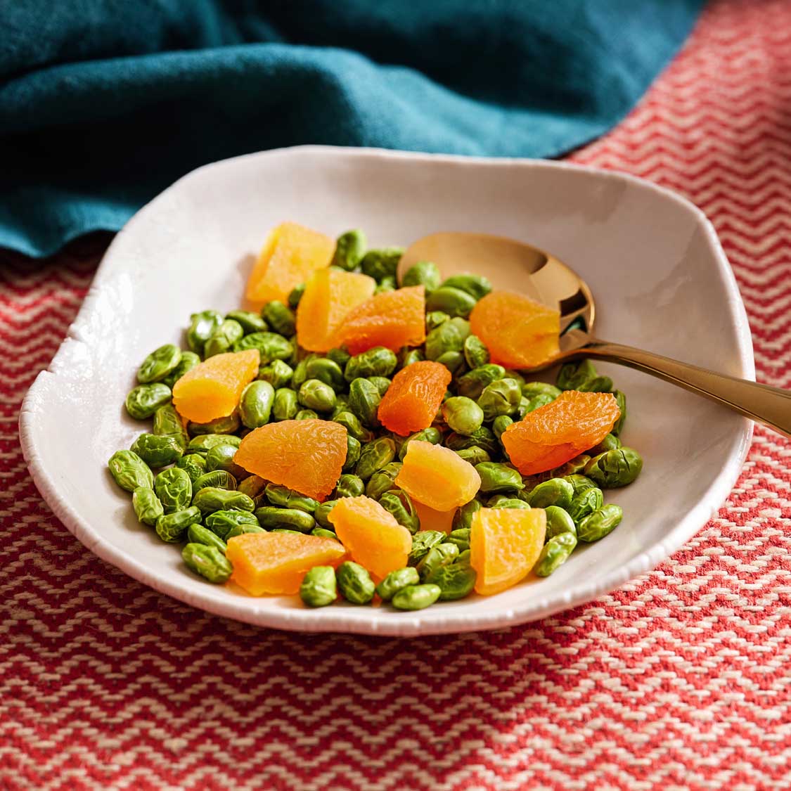 Roasted edamame offers a satisfying crunch, as apricots bring some tangy-sweet for this crunchy/chewy combo.