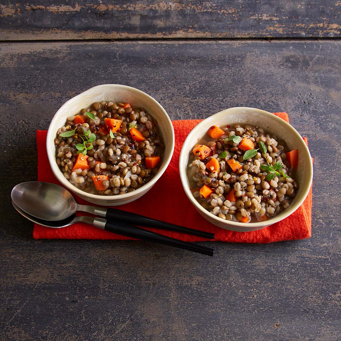 - Place all ingredients in stockpot, cover and simmer until the lentils and barley are tender, about one hour.