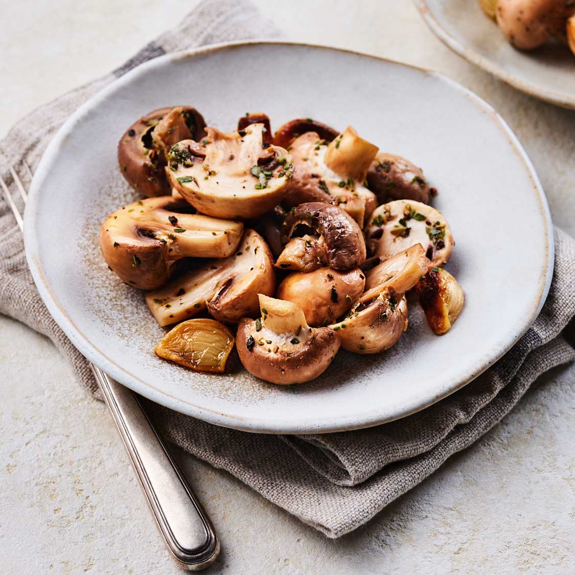 Roasted garlic has a mellow flavor that pairs beautifully with the mushrooms.