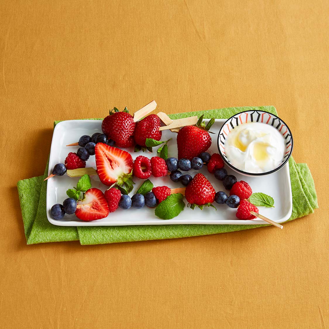 - Dip skewered berries into yogurt while eating.