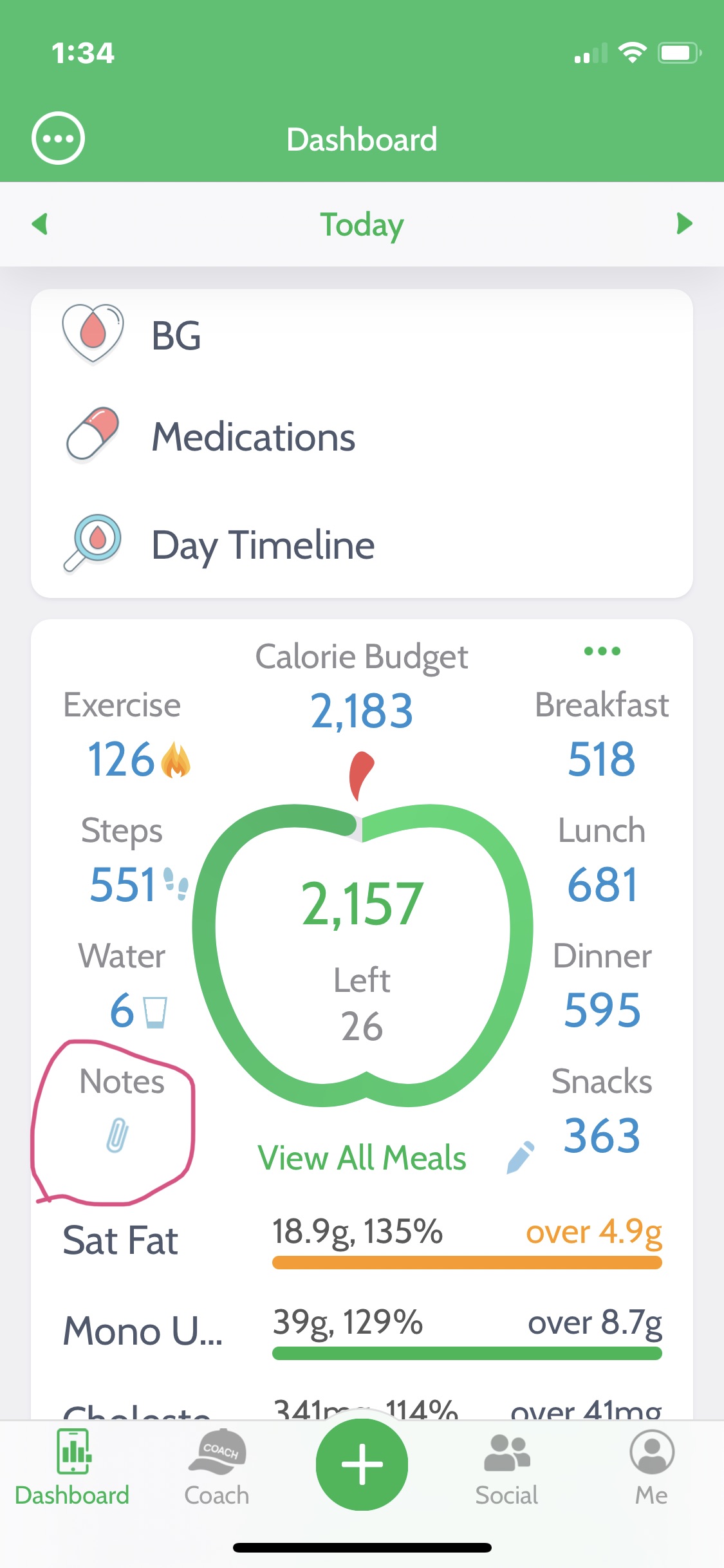 Keeping notes on your thoughts and progress can help you understand and control eating habits along your weight-loss journey. MyNetDiary provides easy access to daily notes functionality directly from the Dashboard.