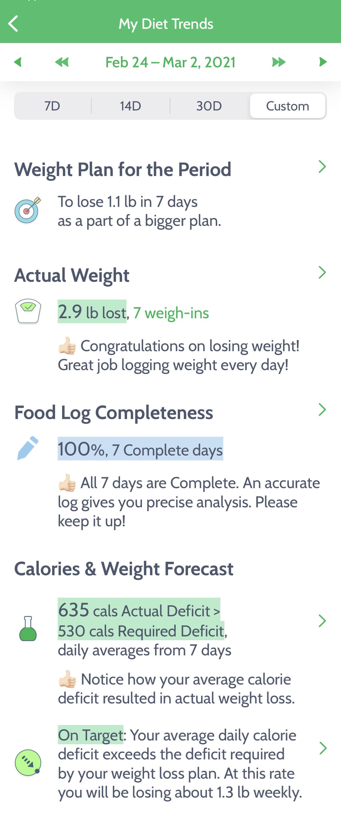 You will see each day in "My Diet Trends" marked as one of the following: