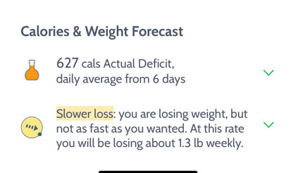 If your calorie deficit is less than the required calorie deficit, you are on track to lose weight, but not as fast as your plan, which results in a "Slower loss" message.